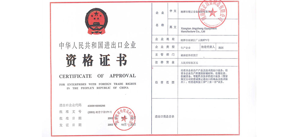 湖南精正設備制造有限公司成立;2月,與清華大學材料科學工程系聯合研制屬于國家863計劃項目的陶瓷膠態注射成型機;10月23日,獲得國家進出口經營權。